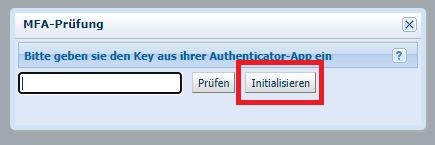 Um zusätzliche Sicherheit beim Login zu bieten, besteht die Möglichkeit zur Aktivierung einer Multi-Faktor-Authentifizierung (MFA), die für alle registrierten Anmeldenamen einer eBIS-Gruppe gültig ist. Die Aktivierung dieses zusätzlichen Sicherheitsmerkmals erfolgt nach entsprechender zentraler Entscheidung des Verlages bzw. Auftraggebers und gilt dann grundsätzlich für alle registrierten Anmeldenamen des Verlages bzw. Auftraggebers (Innen- und Außendienst). Zusätzlich zum Passwort muss dann bei jedem Login ein Code, der über eine Smartphone-App (z. B. Google Authenticator oder Microsoft Authenticator) bereitgestellt wird und jeweils nur kurze Zeit gültig ist, eingegeben werden. Alternativ zur Nutzung einer Smartphone-App können auch Offline-Code-Generatoren zur Erstellung des für die Anmeldung erforderlichen Codes verwendet werden. Wir empfehlen die Aktivierung dieser Funktionalität, da so bei jedem Login über ein zusätzliches Sicherheitsmerkmal überprüft wird, dass die Anmeldung gültig und zulässig ist. Um eine Smartphone-App für die Authentifizierung beim Login nutzen zu können, muss zunächst in eBIS ein Schlüssel generiert werden, der mit der App ausgetauscht wird. Das passiert durch Klick auf [Initialisieren] im folgenden Dialog, der nach Aktivierung der Multi-Faktor-Authentifizierung (MFA) beim ersten Login angezeigt wird: