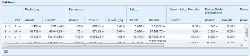 M: Darstellung der Absätze und Umsätze der letzten ca. 36 Monate auf Monatsbasis.